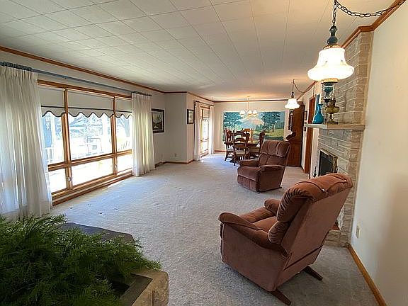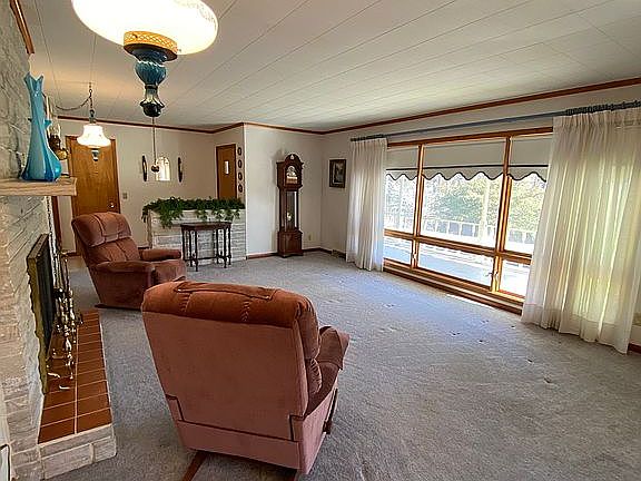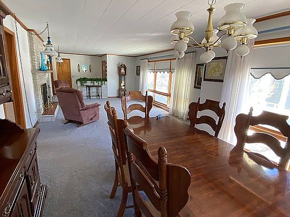 This hilltop home is just outside Dexter city limits. It has a beautiful yard with many mature shade trees and a circle drive. It is solidly built and all brick with a sprawling front porch and spacious screened back porch. An open concept kitchen features an eye level oven and island bar. French doors in the family room open to the screened back porch. The combined living and dining room areas feature a cut stone marble gas fireplace. Floor to ceiling windows allow lots of natural light in kitchen/family and living/dining areas. Convenient main floor laundry contains a crafting or hobby area, a half-bath, and a large pantry. Full basement has a custom-built bar and plenty of room for a sitting area in front of the wood-burning fireplace. There is also plenty of space for a pool and ping-pong table. Other side of the basement is for storage with lots of built-in shelving. If that's not enough storage there is a 36X30 Morton building adjacent to the house's two car garage. This one-owner home has so much potential for someone with a vision who is looking for their forever home.