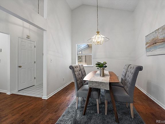 Live easy in Rodeo Drive with a freshly painted and carpeted ranch style home with a finished basement! The main level has brand new windows and features a dining area and nice sized family room with wood burning fireplace, vaulted ceiling, south facing windows and a new slider to the private backyard with new concrete patio. The kitchen also has a new slider leading to a new deck, a breakfast nook with ceiling fan, pantry and all appliances are included. The primary bedroom has a vaulted ceiling with a full bath ensuite and walk-in closet. An additional bedroom and updated full bath round out the main level. In the finished basement, there is another great room with built-ins and gas fireplace, bedroom, full bathroom, laundry (washer & dryer included) and a large storage area and mechanical room with a utility sink. Brand new water heater. The HOA covers roofs, siding, front decking & patios, landscaping, snow removal, tree trimming, asphalt & concrete (backyards are homeowner responsibility). The south facing driveway (hello snow melt!) leads into a 2-car garage with natural light. Paint and carpet were just installed. Easy access to amenities and Parker Road/225. Enjoy living mostly maintenance free on one level!