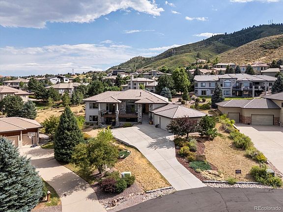 This custom home offers unmatched panoramic views of Denver and the Front Range, giving you the feeling of a private mountain retreat while still being close to the city. Tucked inside the exclusive gated community of Roxborough Park, this property combines privacy, luxury, and Colorado’s natural beauty. Roxborough Park is renowned for its dramatic red rock formations, miles of scenic hiking and biking trails, and world-class golf at both Arrowhead Golf Club and the private Ravenna Country Club. Perfectly positioned on a quiet cul-de-sac lot, this home offers tranquility, privacy, and an incredible outdoor living experience. Step inside and be immediately impressed by soaring ceilings, tall doorways, and thoughtful updates throughout. The main living area flows seamlessly to the lanai-style outdoor living space through expansive sliding glass doors, creating the ultimate indoor-outdoor lifestyle. The kitchen has quartz countertops, a big center island, top-of-the-line appliances, a gas range, and abundant storage. The main-floor primary suite is privately tucked away with sweeping views of Denver, a spa-like bathroom featuring a freestanding soaking tub, timeless finishes, and an oversized walk-in closet. A dedicated home office with French doors and backyard access provides a work-from-home retreat. The main level also includes a guest suite with a private bath and a conveniently located laundry room. The walk-out lower level is bathed in natural light, offering a large entertainment area, two oversized bedrooms with walk-in closets, and two large bathrooms, one being an ensuite guest that feels like a second primary.