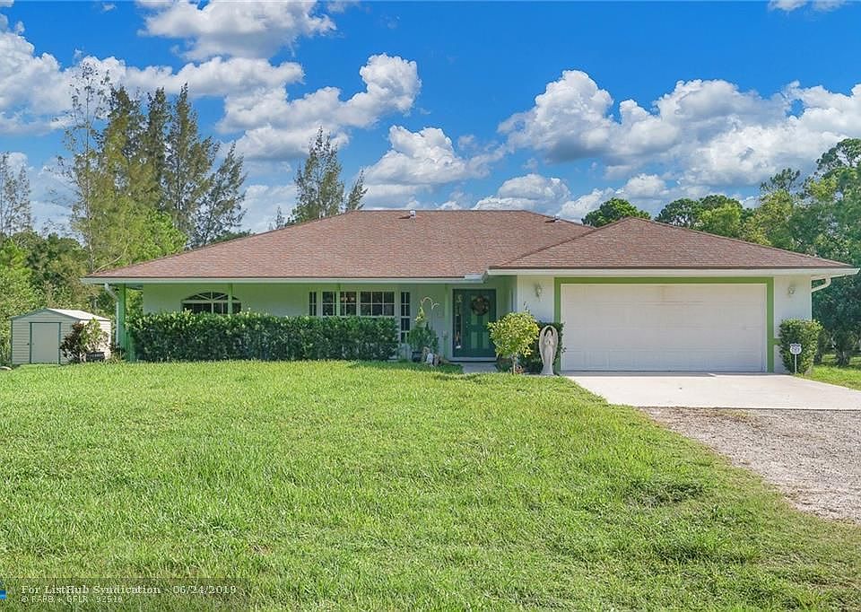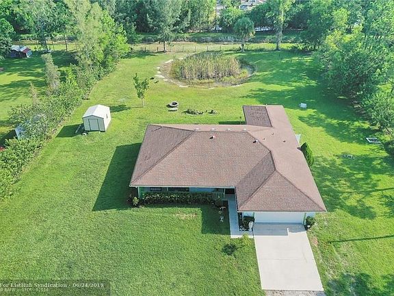 4 Bedroom, 3 Bathroom Home on HUGE 1.25 Acre Lot! Large Fenced In Yard with Pond that Backs Up to a Canal. Additional Features Include Galley Kitchen with Granite Countertops and Lots of Cabinet Space, High Ceilings, Fans Throughout Home, Master Bedroom has Separate Shower and Jacuzzi, Long Driveway with Plenty of Parking, Storage Shed and Fire Pit in Back, Screened In Patio with Fan, Long Covered Porch in Front!Great Location in the Acreage Close to Turnpike and all Palm Beach County Amenities! Don't Miss Out, Make This Place Your Home!