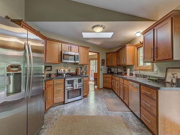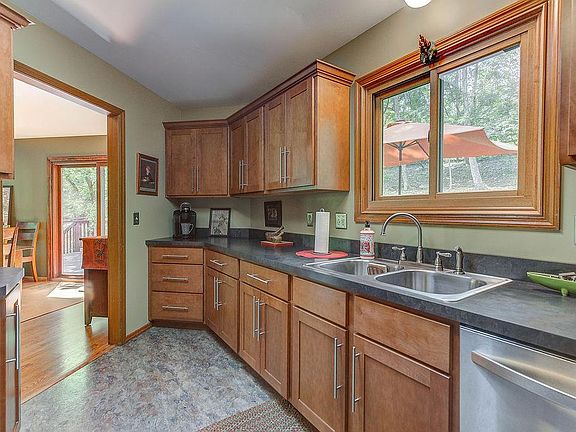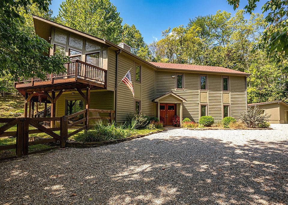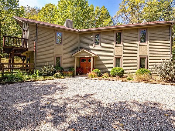 Stunning- Aspen Style Home Nestled On Gorgeous 5+ acre Wooded Lot w/4200sqft w/ 950 sq. ft of wrap around deck!!! Features 3BR/3BA, Custom Kitchen w SS appliances, Amazing Great Room w/A Wall of Window and 2 Huge Stone Fireplaces,Large Master Bdrm w/Walk In Closet /Finished LL w/Walkout,Fenced Yard & So Much More!!