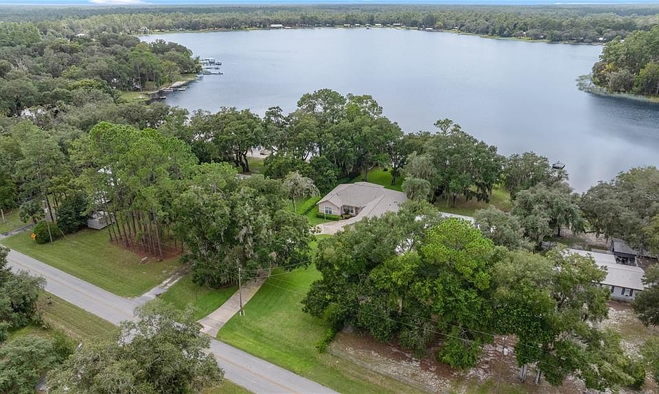 Enjoy life on the lake with this spectacular home located on spring fed Island Lake!! This gorgeous 4 bedroom, 3 bath home with a 3 car garage sits on .66 acres with perfect views of the lake. The ROOF was replaced in 2022 and the WELL was replaced in 2023. This 2725 square foot home has an additional 200 square foot CONDITIONED FLORIDA ROOM with a wall of windows looking over the lake. This very well maintained home has large bedrooms and is very well set up as a second or a primary lake home, included irrigation. Island Lake is 27' deep at its deepest point and is a dual purpose lake that allows for boats for added fun! This one is ready for you to make it your own dream home on the LAKE!!