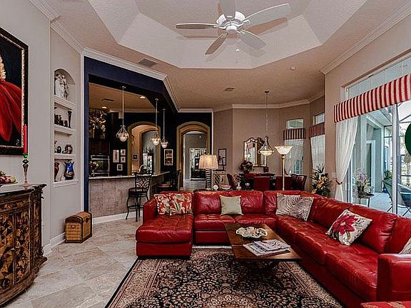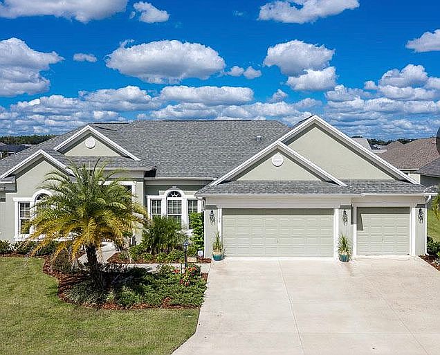 One or more photo(s) has been virtually staged. Stunning 4/2.5 PREMIER Grandview in family friendly Oxford Oaks. NO BOND. Huge outdoor space with Saltwater POOL. Oversized 3-Car Garage, Large CORNER lot, tremendous CURB APPEAL, over $100,000 in upgrades/enhancements. Towering lead-glass French doors at front entrance, 12 foot ceilings, higher baseboards, Tile throughout living areas, Master and fourth bedroom/office have beautiful engineered hardwood floors, CROWN MOLDING in kitchen, breakfast nook, and great room, custom window treatments, rounded drywall corners, built-in niche shelves, custom closets in three bedrooms. HIGH-END Cherry cabinets, SS appliances, DOUBLE WALL oven, BOSCH gas cooktop, GRANITE countertops, tile BACKSPLASH LARGE WALK-IN PANTRY with custom shelving, HUGE breakfast bar, large ISLAND, Pendant lighting, pull-outs, and under-cabinet lighting. Butler's Pantry with GRANITE countertops, tile BACKSPLASH, CHERRY cabinets, KITCHEN AID wine cooler, sink, and wine rack. Breakfast nook off kitchen with bay window. Kitchen opens to huge family room with 12-foot ceiling and tray ceiling. Large formal dining room next to butler's pantry is perfect for family holidays and for entertaining. The spacious living room, ideal for sitting area or piano, opens through sliding doors to the lanai and pool. The MASTER SUITE is composed of its own wing off the family room and is separated by large double doors. The bedroom on the left has beautiful engineered HARDWOOD, TRAY ceiling, and a door to the lanai with built-in blinds. Down the short tiled hallway are two custom walk-in closets with wood shelving and built-in safes. The luxurious en suite bath has double sinks, GRANITE countertops, CHERRY cabinets, a large tiled ROMAN (walk-in) shower with glass blocks, and linen closet. Bedrooms 2-3 have high ceilings and custom walk-in closets. Bathroom 2 has a tiled shower-tub combo and vanity with GRANITE countertop. Bedroom 4, which could also be used as an office or den, has a 12-foot ceiling, double closet, and beautiful engineered HARDWOOD floor. Indoor laundry room with high-end washer/dryer and built-in cabinets. Fantastic outdoor living space with MASSIVE LANAI, SALTWATER POOL, half POOL BATH, birdcage, and enhanced landscaping for privacy. Truly the perfect space for entertaining and relaxing with friends and family. Bountiful storage in oversized 3-Car garage with custom, built-in shelves and closet, and insulated garage doors. Water filtration system. Instant hot water with circulating pump on water heater. Brinks Security System. Oxford Oaks is a non-age-restricted community built by The Villages®. Community amenities include a large pool, playground, pickleball courts, tennis courts, and outdoor exercise equipment. Conveniently located near the intersection of 466 and 301, Oxford Oaks is minutes from THE VILLAGES® CHARTER SCHOOLS, shopping, restaurants, banks, and The Villages®. Walmart (1 mile), Fresh Market (1.6 miles), and Publix (2.5 miles) are right down the street on 466. Lake Sumter Landing (5.4 miles) and Brownwood (7 miles) Squares in The Villages® are about a 15 min drive. PLEASE WATCH OUR VIDEO OF THIS FANTASTIC POOL HOME!