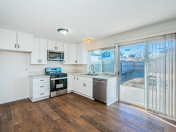 Beautiful Mira Mesa 3-bedroom, 1-bathroom has been completely renovated with new vinyl plank flooring, quartz countertops, premium fixtures and stainless steel appliances. This home also features a large yard, 1 car garage, new exterior paint, new washer & dryer and refrigerator. Great proximity to retail, dining, freeways and all that San Diego has to offer!