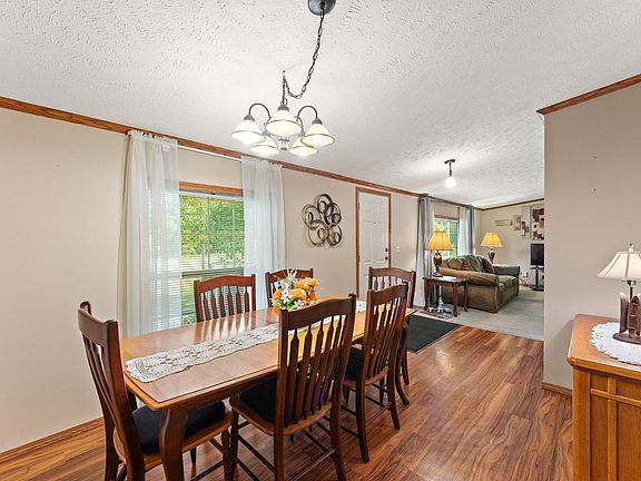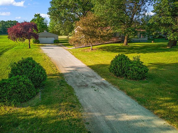 Discover the perfect blend of space, privacy, and convenience in this 5-bed, 2-bath ranch-style modular home, nestled on just over 2 acres of serene countryside. Boasting over 2,700 finished square feet, this home offers a spacious layout ideal for entertaining. Step inside to a welcoming open-concept living and dining area, perfect for gatherings. The large living room flows seamlessly into the adjoining family room, complete with a cozy fireplace and views of the rear deck. The kitchen features an abundance of cabinet and counter space and includes appliances. Enjoy meals in the separate dining room or at the kitchen's island. The main level offers a thoughtful split floor plan, with the primary bedroom located away from the other 2 bedrooms for added privacy. The ensuite boasts a double bowl vanity, soaking tub, and a separate shower. Downstairs, the full, partially finished basement expands your living space with 2 additional bedrooms, a kitchenette area, an eating area, a second living space, and tons of storage. Step outside onto the deck, where you can entertain or simply enjoy the peaceful surroundings. The oversized 2-car detached garage provides ample room for vehicles and storage. Just 10 minutes from town, this home offers the perfect mix of seclusion and convenience. New Roof 2021, A/C 2023, Septic replaced 2018. Don't miss out on this rare opportunity!