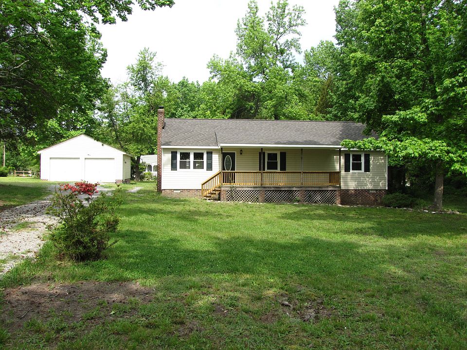 Completely renovated ranch with detached 24x30 garage on over 1 acre close to I95 and I295. New dimensional roof on house and garage with 50 year warranty. New dutch lap vinyl siding. Replacement Low energy vinyl windows and doors. New 2.5 ton York 13 seer heat pump. Kitchen includes new maple cabinetry, double built in pantry, stainless steel appliances. Replaced lighting fixtures and devices, plumbing fixtures, bathtub and shower, doors, and all interior hardware. New hickory laminate flooring, vinyl, and stainmaster carpet and padding. House has been totally renovated. Shrubs and mulch to be installed across front. Porch and deck to be stained.