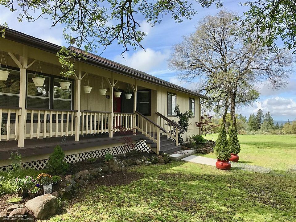 Enjoy privacy with sunset views in this charming, ranch style home on approximately 9.68 acres, about 6.5 miles from downtown Nevada City. This home features approximately 2100 sq ft, 3 bedrooms/2 full baths with double sinks. The master is spacious with walk in closet, bonus room off laundry is currently used for home office. Kitchen and Laundry room nicely remodeled in 2013 with cherry cabinets, quartz counter-tops and appliances. Composite decking and exterior re-paint done in 2017. So many upgrades including a 7.9K solar system, HVAC system, NID storage tank and pump, soft water system, new attic insulation, Leaf-guard gutters and much more! The quiet, sunny hilltop location offers expansive views and oak-dotted fields with abundant NID irrigation water on site.