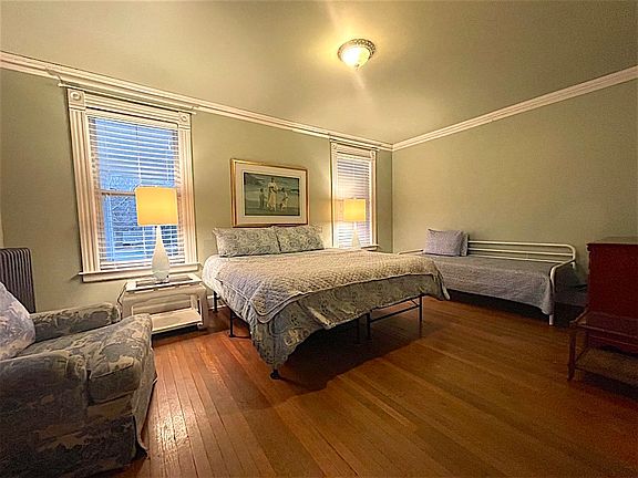 Legal 2 family and legal Air B&B. Victorian home boasts charm from yesteryear with wraparound porch and hard wood floors. Beautiful stained glass windows, balusters, and crown molding adds to the charm and character of the home. Home boasts 5 good sized bedrooms, 2 full baths, 2 staircases, and great yard for games or summertime fun. 5 car garage is great for the car enthusiast, extra storage, or additional rental income if needed. Second floor unit has an enclosed porch that overlooks pond. Don’t miss out on this great investment opportunity, schedule your showing today!