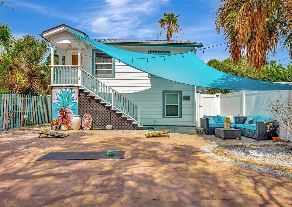 ** FURNISHED** | ** RARE DUPLEX MINUTES FROM TREASURE ISLAND BEACH ** | ** PUTTING GREEN & RV / BOAT PARKING ** This meticulously maintained duplex comes fully furnished, presenting the perfect opportunity for a turnkey investment or your personal seaside vacation home! Each unit is distinctly designed and styled, offering the right balance of comfort and charm. Both units are full 1b/1b with complete kitchens, quartz countertops, modern furnishings, tiled bathrooms, separate entrances, and their own HVAC systems. The units are separately metered (water is shared) and share a separate storage/laundry unit making it the ideal investment property or shared vacation home. This duplex has received a number of important upgrades and renovations, including a newer metal roof (2021), a freshly installed water heater (2024), new vinyl flooring downstairs (upstairs is original hardwood), completely new paint on all the interiors and exterior, brand new stainless steel appliances in both units, and a number of smaller finishes ensuring the best quality and minimal maintenance for the new owners! The upgrades don't stop on the inside! The whole property has been re-landscaped with fresh stone and new tropical plants, along with your own fully fenced-in courtyard. The courtyard includes a firepit with Adirondack chairs, a putting green, an outdoor ping pong table, and even an outdoor shower! Plus, you have a double-door entrance giving you access to an easement road making it easier to bring it jet skis, kayaks, or even boats (there's a public boat launch just 2 blocks away). Out front is an additional locked storage area beneath the stairs, additional lounge areas including a hammock, and a *very large* paved driveway with enough space for multiple vehicles, jet skis, boats, and even an RV! With the furnishings, amenities, well-kept maintenance, and being only minutes from the beach, Johns Passe, and a boat launch this duplex is the perfect turnkey investment or a great opportunity for a vacation home that can accommodate family or let you live in a unit while renting the other!