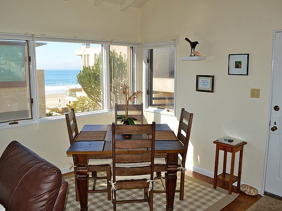 Enjoy the winter and spring at this ideally located Manhattan Beach duplex just one house away from the sand and a short walk to the center of town. You'll love the ocean views and hearing the sounds of the surf while taking in the fresh ocean air. The unit has numerous upgrades throughout, and wood beamed ceilings in the living area. The updated kitchen boasts custom cabinets, quartz counters, gas range, dishwasher and microwave, plus a large refrigerator. Everything you need to make a quick snack, or complete gourmet feast is provided for your beach stay. There's an ocean peek from the front bedroom and an outside entrance at the rear bedroom. Relax on the lawn/patio area while you watch the waves by day or sunset at dusk. A one car garage is provided for your stay along with a shared washer/dryer. Your Beach Bungalow includes a barbeque, beach chairs and a boogie board for experiencing Manhattan Beach to the fullest. You'll enjoy the short four block stroll into town where you'll find a fabulous selection of coffee bars, restaurants and one-of-a-kind boutiques. Book your stay now at this ideally located unit on a walk street close to town. No Smoking, No Pets!
