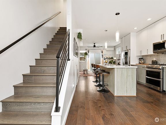 Come home to this spacious townhouse w/ all the modern amenities, including a deeded parking spot. Chef's kitchen features gas stove, double oven, over-the-range microwave, smart refrigerator w/ intstaview window & all wifi enabled appliances. 2 spacious bedrooms on 2nd floor & luxurious primary suite on the 3rd w/ lrg closets, rain shower, slipper tub & heated floors. 3rd floor flex space perfect for office, gym, art room, anything your heart desires! Summers will be a breeze w/ mini split AC, ceiling fans, downstairs fenced in garden area, & private rooftop deck w/ gas hookups perfect for firepit & grill. Conveniently located a couple blocks from shops, restaurants, parks, cafes, public transit & schools w/ easy access to Downtown & I-90.