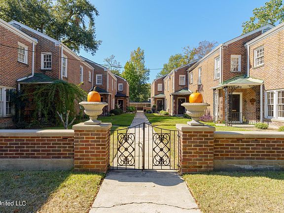 Set in the heart of Historic Downtown Hattiesburg, this meticulously maintained 2-bedroom, 1.5-bath townhome in the Officer's Quarters offers the perfect blend of classic charm and modern updates. Built in 1940, the home's timeless character is on full display with striking exposed brick accent walls and beautifully refinished hardwood floors throughout the upstairs. Upon entry, you're greeted by a spacious living area featuring a cozy fireplace framed by natural light pouring through windows dressed in plantation shutters. The kitchen is a standout with its granite countertops, under-cabinet lighting, and stainless steel appliances. Thoughtful upgrades include a custom pull-out drawer cabinet under the peninsula, maximizing storage and functionality. The attention to detail