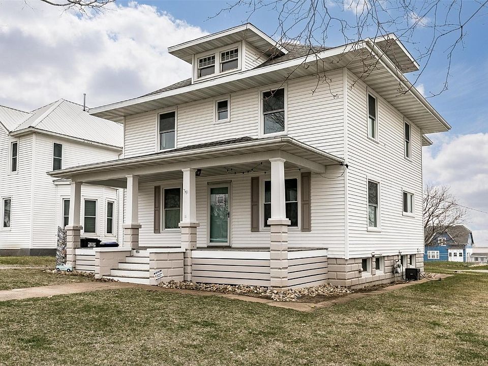 Talk about a renovation! This home is absolutely gorgeous and the thought and love that’s been poured into it is evident as you tour it! A huge welcoming front porch takes you into the spacious living room open to the formal dining with built-in shelves between. Beautiful wood floors on the main level with white trim all throughout. The formal dining also has the original glass doors leading to a back porch. The kitchen features and entirely new layout with brand new soft-close cupboards, stainless appliances, quartz countertops and tiled backsplash - prepare to be impressed! Main floor bedroom with half bath could also be the perfect office or workout space. Upstairs are three spacious bedrooms including the primary that opens up to a sleeping porch. There’s an abundance of space in the full bath that was also recently renovated and includes an oversized tall double vanity, tub/shower combo and of course a laundry shoot! Fresh, neutral paint all throughout. We could go on an on with all of the improvements on this one; new roof, newer windows, newer furnace and A/C, updated electrical. Lower level has additional storage, shower and stairs that lead to the backyard. This is truly one you have to see to believe so don’t wait!