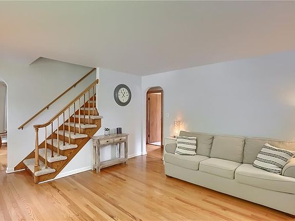 Charming, Cape Cod home situated on a lush fenced in home site w/mature trees. Greet guests on covered front porch & welcome them into the home. Formal DR has HW & vivid windows. Access to the KIT makes this space perfect for entertaining. The chef's KIT has abundant white cabinetry w/under cabinet lighting, ample counter space, electric stove & access to the breezeway leading to the garage. FR has HW, sun-filled windows & updated gas FP. Main floor BR has HW & generous storage - this space is versatile. Full BA features tile floors & tiled tub/shower. Ascend to the additional BRs boasting luminous windows & ample storage. On the lower level you will find versatile space that can be used as a second FR, game room or anything you desire. Additional storage & laundry are located on the lower level. On warm days, entertain on the stamped concrete patio. Enjoy your favorite snacks & beverage or partake in yard games in the fenced-in rear yard. This house is ready to become your home.