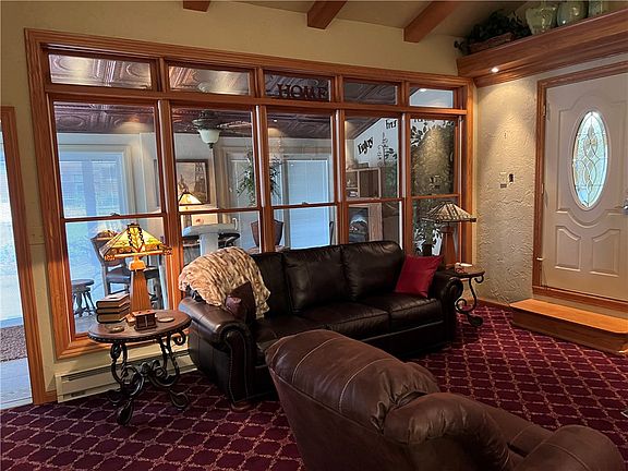 2 bedroom home with sunroom, office and inviting yard space. Space off the bedroom has a vanity and tub with shower. Utility room has a sink and cabinets. Lots of cabinets in the kitchen which provides plenty of storage. Dressing area off of 2nd bedroom has a sink with nice added closets. The living room has a gas fireplace and windows looking into the 3 season room which has tin ceilings and 3 sliding glass doors opening to the nice covered patio which also has a tin ceiling. The yard is fenced and has a nice landscaping. The large garage has lots of storage cabinets. THIS PROPERTY IS ZONED COMMERCIAL at the present time. COUNTY RECORDS DO NOT HAVE YEAR BUILT on record. Very nice property that you will want to check out if your in the market for a home in St. Elmo.
