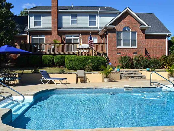 Fabulous home to raise your family. 5 Bedrooms and 3.5 Baths with a 18 x 36 in ground pool! Master on the main level with custom built in cabinetry and large walk in closet. Master bath has jetted tub and separate shower. Beautiful large kitchen with adjoining breakfast room with great view of the pool and back yard. Two story foyer. Formal living room or office features glass doors and has built in cabinetry/ shelving with beautiful arched windows and plantation shutters.Well appointed dining room with arched windows and plantation shutters , large den with fireplace. Main level has new carpeting and home has been completely painted through out inside of the home. Upstairs is 4 bedrooms and a walk in attic for storage. New hvac upstairs including new duct work.Deck on back overlooking pool with patio area and spacious back yard.Roof recently replaced with 3 tab architectural shingles. Masonry work on the house features arched brick header over front door, coins over windows on the front. Masonry covered rocking chair front porch. Double car garage has large closet for storage. A fantastic place to call home!