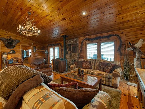 Very private, true log cabin situated on 11.43 acres. This 2 bedroom 2 bath home has cathedral tongue and groove ceilings throughout. Beautiful pine floors, all wood interior and wood burning stove. Open kitchen living room concept. Master bath has tiled floors with large handicap shower. Master bedroom and laundry are on the main floor allowing for one floor living. Wide porches with open beams and large cut trees for ceiling support. Enjoy the mountains of Western NC and abundance of wildlife. There is a finished bonus room in the basement, perfect for additional sleeping quarters or media room. Two car post and beam carport with a ceiling height to store an RV. This cabin is conveniently located to Hayesville NC, Hiawassee GA, Lake Chatuge, shopping, golf, dinning and so much more.
