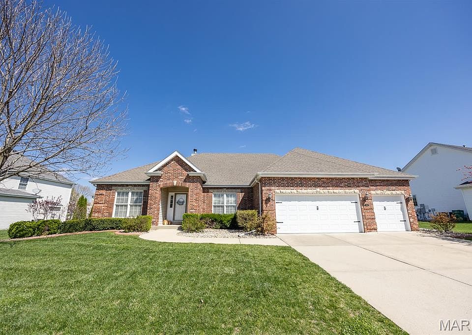 Discover over 4,000 sq ft of living space in this sprawling ranch, nestled in the highly sought-after Far Oaks golf community and within the O’Fallon school district. Step inside to the elegant entryway that is framed by a formal dining room and home office, and flows seamlessly into the spacious bright and airy living room featuring soaring ceilings, stunning floor-to-ceiling fireplace and an abundance of natural light. The living room connects effortlessly to the eat-in kitchen, where you’ll enjoy direct access to the backyard patio that has been newly fenced - perfect for your furry friends! Main level also features split bedroom floor plan providing privacy with a generous primary suite and updated bath. The nearly fully finished basement is an entertainer’s dream, complete with a bar, spacious gathering area, full bathroom, 4th bedroom and a bonus room ideal for a home gym or hobby space. With room to spread out and enjoy, this home offers incredible versatility and comfort.