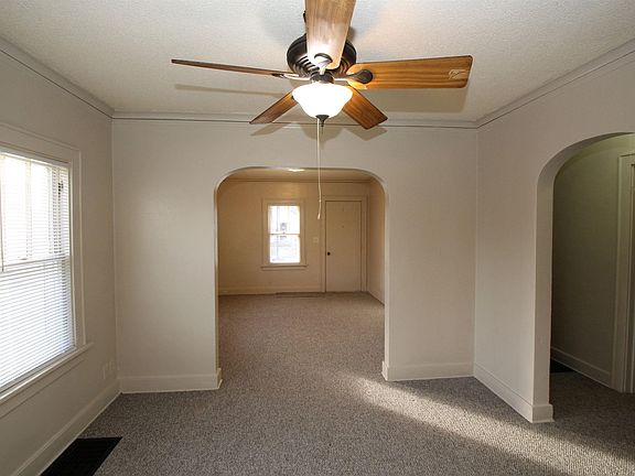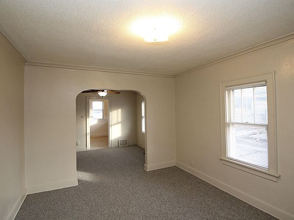 Affordable 2BR home is a great option for first time homebuyers or investors! Move-in ready with fresh paint and new floorcoverings. Charming 16’ x 7’ covered front porch. Crown molding in living and dining rooms. Partially finished lower level offers a rec room with a bar and a den. Fenced yard plus a 12’ x 20’ garage with electricity. Extra off street parking in front of porch. New shingles on house and garage 2018. Bonus shower in the laundry room. 2 window air conditioner units remain. Updated 100 amp electrical panel (circuit breakers). Located near bus route behind Subway. Home sold as is.