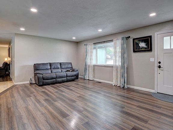 Beautifully updated 3-bedroom, 2-bath home on .58 acres with 1,556 sq ft of living space! Inside, you'll find a spacious living room with cam lighting, a family room, and a fully remodeled kitchen featuring quartz counters, stainless steel appliances, wall oven, gas stove, motion-sensor faucet, breakfast bar, and abundant cabinets. Enjoy waterproof flooring throughout, travertine tile, ceiling fans in every bedroom, and a certified wood-burning fireplace.