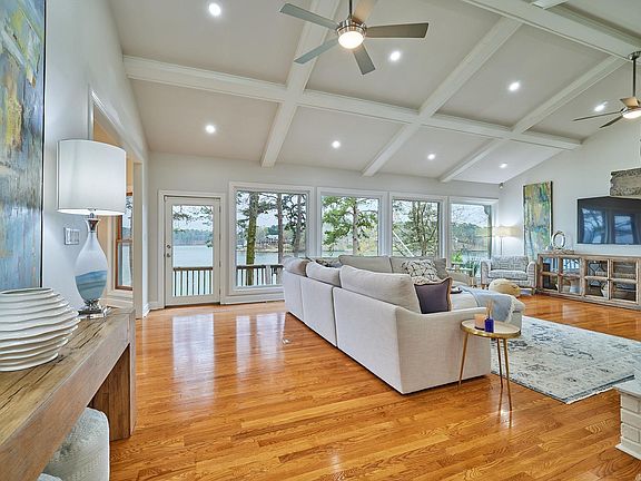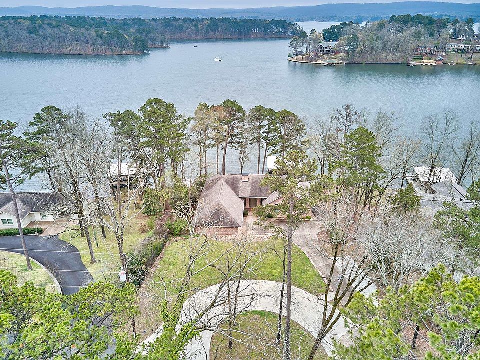 Prestigious Long Island is home to this Lake Hamilton property with stunning views of Electric Island. Impeccable updates including paint, tile, flooring, HVAC systems, stove, refrigerator, wall oven, double boat dock and PWC dock with remote control hoists. The living room boasts a vaulted and coffered ceiling. The main level primary suite is an inviting retreat, with a muted color palette and spa inspired bath. Plentiful parking with circular driveway. Bonus room is currently used as a 5th bedroom.