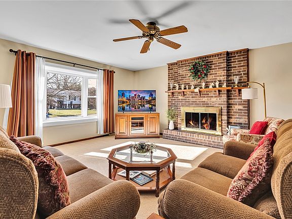 Amazing home in Chapel Valley, walking distance to the pool. This oversized split-entry boasts updates throughout. The large living room features a bay window and a brick fireplace with gas logs. The dining room has space for a large table seating 8. The updated kitchen includes an eat-in area with stainless steel appliances. A sunken Four Seasons sunroom with glass windows opens to a stamped concrete patio. The flat lot includes a storage shed. The master bedroom has a full bathroom with a walk-in updated shower, and the hall bathroom features a tub and shower. The finished lower level has another brick fireplace, a mantle, and a wood-burning fireplace. There’s also an extra room for an office or bedroom, a bedroom with two storage closets, and a large laundry room with a full bathroom. The oversized two-car garage completes the home. Beautiful front entry with block retaining walls. Close to 376, Pittsburgh International Airport, and Downtown. Move right in!