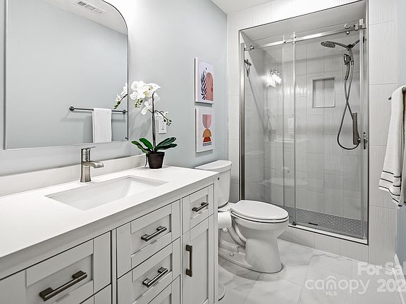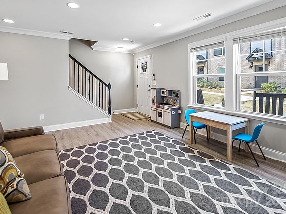 Welcome to your dream home nestled in the heart of Charlotte, where luxury meets convenience & beautiful city views await you from your own rooftop terrace. This modern townhome boasts an inviting open layout flooded w natural light. Step into the stunning gourmet kitchen featuring a 5 burner gas range, expansive island w ample seating, & a well appointed bar area complete w beverage fridge. Dining area allows for a large table to seat family & friends. Entertain effortlessly as the kitchen flows into the great room accented by a contemporary fireplace & large sliding doors that connect the indoors to out. Enjoy your morning coffee on the private deck. Retreat to the primary bedroom where a spacious walk in closet outfitted w a custom storage system & stylish en-suite bath w dual vanities & luxurious walk in shower await. Main level flex space perfect for home office, playroom or guest area w additional full bath. All located within 10 minutes of uptown Charlotte & local conveniences.
