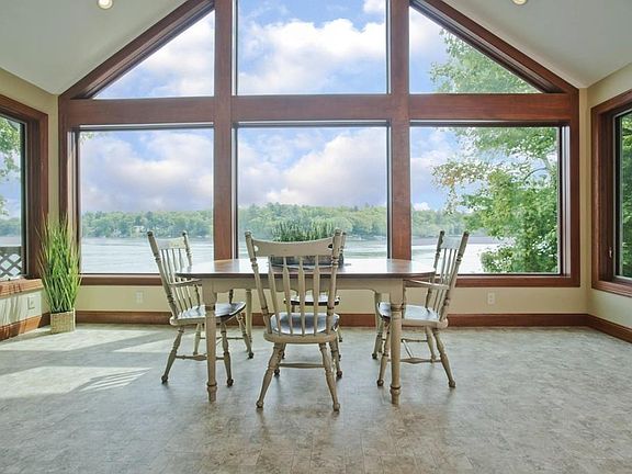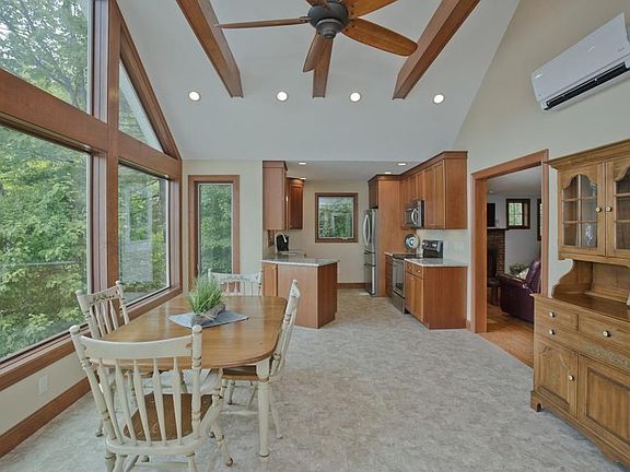 Come home to the tranquility of a waterfront retreat every day! This stunning lakefront property has a spectacular dining room with vaulted ceiling, overhead wood beams and floor-to-ceiling windows to maximize the gorgeous water views. An updated kitchen features granite counters and stainless steel appliances so you can cook up a delicious dish in style while guests soak in the lovely atmosphere. After dinner, relax on the spacious deck as the sun sets, then gather around the fire pit for s'mores. Ideal for nature lovers, this property includes a dock that can hold two boats as well as a swim platform for fun in the sun. When you're not enjoying nature, the living room's beautiful brick fireplace offers cozy ambiance whether entertaining loved ones or relaxing solo. All bedrooms provide comfortable accommodations, especially the freshly remodeled master bedroom, that offers single floor living and the other two fully remodeled bedrooms with exposed wood beams, one with a stunning water view. The newly remodeled basement with its brand new half-bath walks out onto the oversized deck overlooking the water. Photos can't accurately capture this stunning property!