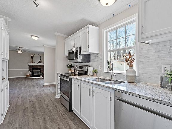 Gorgeous Ranch on HUGE .9 acre lot with 2 car garage AND detached heated/cooled 1 car garage/workshop! Features a bright open floor plan and upgrades galore including kitchen overlooking cozy family room, granite countertops, glass tile backsplash & Stainless Steel appliances. Owner's suite with double vanity and WIC. Wide plank, pewter oak laminate flooring throughout main living areas and new PLUSH carpet in bedrooms. Screen Porch overlooking flat back yard. Move in and enjoy! Staged photos to show homes potential.
