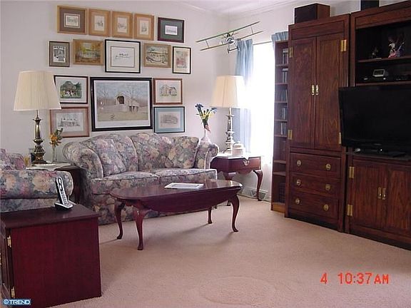 Located on a quiet street (next to open space), this lovely 3BR home features a spacious eat-in kitchen w/ adjoining morning room, a single deep-bowl ceramic sink & overlooking window, loads of storage space in wall-to-wall oak cabinets (w/ under-cabinet lighting throughout), a newer dishwasher, separate island serving counter w/cabinet & vinyl tile flooring. The vinyl-tiled main entrance opens onto an equally spacious living/great room w/ an adjoining DR featuring 2 sets of double windows. The large MBRM has its own walk-in closet & features a 2-vanity private bath w/ both a sunken tub & a shower stall. A new energy-efficient electric heat pump w/ central air conditioning was installed in 11/12, a water softener added in 2007. Additional features: 2 more bedrooms w/ a separate full bath including a tub & shower; a 10x25' covered patio w/ pull-down stairs to above attic storage; and lastly, 3 off-street private parking places directly adjacent to the kitchen door for easy grocery access. Motivated seller!