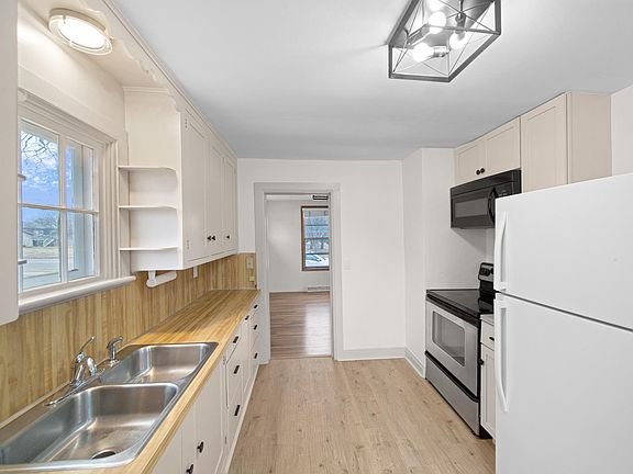 Newly remodeled 3 bed 1 bath home on large corner lot with 2 car garage. Bathroom fully remodeled, kitchen partial remodel and updated. New plumbing throughout, tankless water heater, flooring in kitchen/bath and upstairs. Newer furnace, a/c unit and roof. Excellent starter home or for anyone looking for low upkeep and ample space in town.