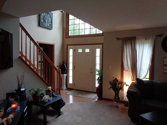 STONE FACED COLONIAL ON A QUIET CUL-DE-SAC. Now offered thousands less than appraised value!!! Owners will entertain all offers. Act Quick!! Open floor plan with hardwood floors, huge kitchen with center island, stainless steel appliances, pantry, dining area open to living room with lots of windows. Three large bedrooms, 2.5 baths, master bedroom with private full bath. Bonus room and half bath on main level. Relax on the back deck overlooking the woods for privacy. Garage a bonus!