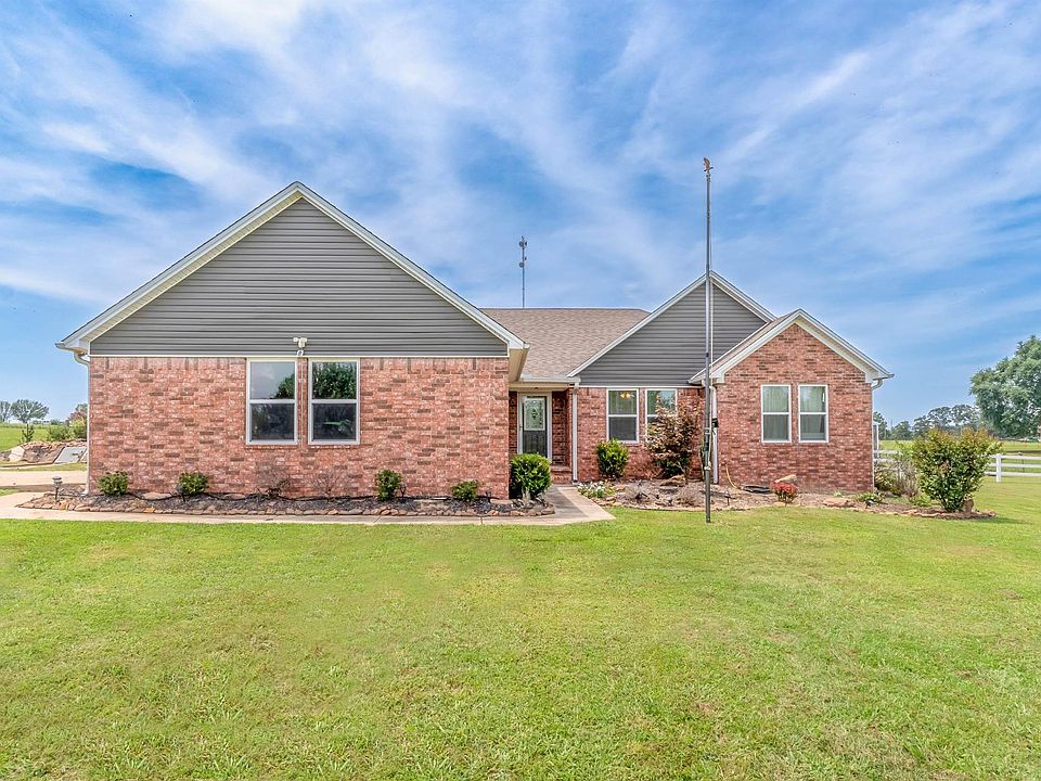 Country Living at it's best! Live in the country with easy access to town, all while enjoying your own quiet space! Gated Entry with code entrance for even more privacy! This nice open concept home has a 12 x 12 screened in back porch off of the living area, a storm shelter and a bonus 32 x 12 tiny home including an 8 x 12 side addition! All of this on 3 acres providing plenty of land to plant a garden and have livestock! There is an 8 x 16 metal storage building and a chicken coupe to convey! Home has updated kitchen backsplash and countertops with an island bar. Spacious living room has a gas fireplace. Hall bathroom has been updated! Large master bedroom suite with a sitting area and a huge closet. Large master bath with walk in shower and 2 closets. Yes! 3 master closets! Home has some new paint and laminate flooring in living area and hallway. Home has new windows 2021, new heat pump 2023 and a Generac 11 KWatt generator is approximately 3 years old! Backup propane tank on property. Hurry, this Home Sweet Home has it all and will go fast! Solar panels do not convey. (measuring is suggested)