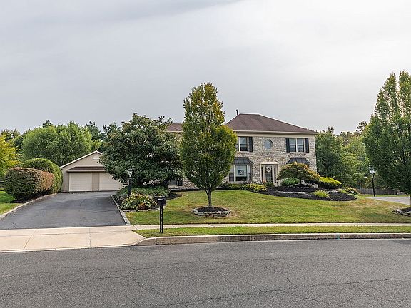 Introducing this stunning 4-bedroom, 2.5 bathroom Montgomeryville single family colonial. This property features a built-in oversized 2-car garage as well as a massive detached 2-car garage. Perfect for those that need extra garage space! Walking up to the home you will fall in love with the mature landscaping, extensive hardscaping and stone encrusted exterior. Enter the home through the 2-story foyer finished off in gleaming hardwood flooring. The family room has crown molding and opens into the dining room. The formal dining room is complimented by two tone neutral colors, crown molding, chair rails and hardwood flooring. The eat-in kitchen features hardwood flooring, backsplash, upgraded cabinets, kitchen island, dishwasher, gas range, built-in microwave and a hutch bar area. The family room has a vaulted ceiling, neutral paint, tons of windows, back yard access, gas fireplace, built-in speakers, skylights and access to the half bath, laundry and garage. Additionally in the front of the home there is a den, that can easily be used as a formal office. On the 2nd floor we have a massive master bedroom with a walk-in closet, supplementary closet, ceiling fan and a fully updated ensuite with tiled flooring, huge soaking tub, stall shower and double vanity. There are three additional large bedrooms serviced by a full updated bathroom as well. The full basement is huge and has a large storage room. In the back of the property there is a new storage shed, concrete patio and deck. There is a full irrigation system and site lighting for the trees. This home is considered to be in one of the best locations, being that it is a central pivot point to all major roadways in every direction and is also close to public transportation, restaurants, parks, schools and shopping. I promise you this amazing property will not last on the market long. Make an appointment today before it is too late!