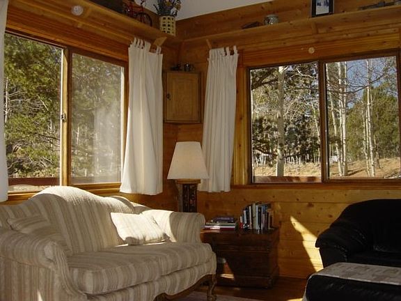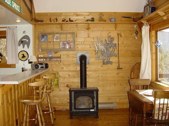Your search for the perfect mountain getaway is over! Charming A-frame log home on 1.38 acres with beautiful mountain views. Wood floors in the living, dining, and main level bedroom. Abundant windows add to the energy efficiency of the home and allow for fabulous views from inside. A gas log stove easily heats the entire home. Kitchen has breakfast bar, abundant cabinetry and tile floors. Spacious master bedroom is accessed from new wood staircase.Wrap-around decks on three sides of the home with front deck having built-in seating. Home has been well maintained and is move-in condition.