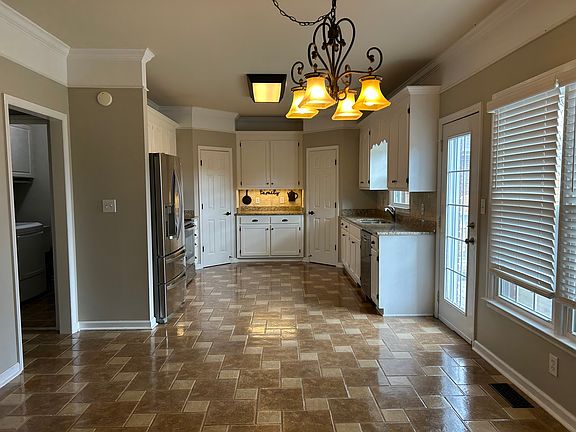 Two car garageGarage man doorFenced yardPrivate office spaceRecently painted cabinetsTile backsplashGranite counter tops