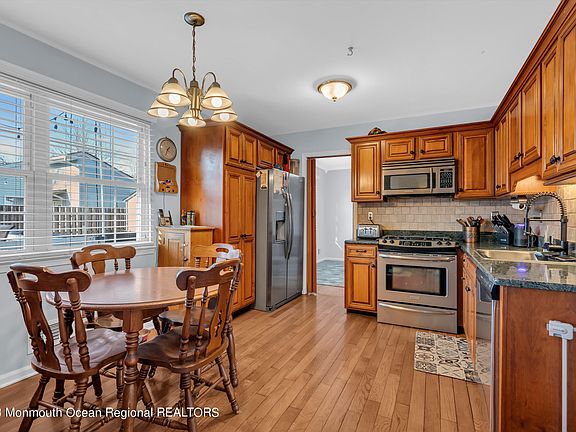 Welcome to Bayville's neighborhood charm! This stunning 1,846 sq. ft. corner lot Colonial home offers a perfect blend of elegance and comfort. Upon entering the first floor, you're greeted by a living room adorned with French doors that open to a spacious private dining room. The heart of the home lies in the expansive eat-in kitchen, illuminated by natural sunlight. Powder room, and laundry room are both conveniently located on the first floor. Inviting family room is a haven for relaxation and its doors open to a backyard deck for outdoor entertaining or simply unwinding.