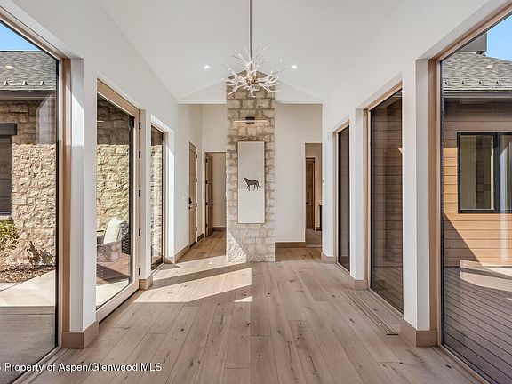 Experience luxury mountain living at its finest in this brand-new custom home conveniently located in the coveted and amenity-rich subdivision of River Valley Ranch in downtown Carbondale. Nestled in a private cul-de-sac, 112 Bowles Drive was meticulously designed to offer a most functional floor plan including four bedrooms + an office with the intention to create living spaces that feel like a retreat. Upon entry, the proper foyer welcomes guests to the primary wing or in the direction of the secondary primary suite. The main level also encompasses an office and a custom kitchen open to the great room and dining area. The walkout basement offers two additional bedrooms plus a sauna and an additional entertainment space. Vaulted ceilings in nearly every room of the home accentuate the expansive windows and stunning views. Other intentional interior features worth notice include a laundry room accessible from the primary closet, a raised kitchen dishwasher, a water bottle filling station adjacent to the mudroom cabinets, a walk-through pantry and two oversized stone fireplaces. Design detail didn't stop with interior considerations. The exterior of the home includes equally appealing attributes such as an oversized two car garage complemented by the additional single bay garage on the South wing for a combined total of 900 sf of garage space in addition to a 600 sf heated storage area. A multi-sectional deck emphasizes outdoor entertainment opportunities with exceptional views, an inset hot tub and stair access to the spacious backyard. This oversized lot offers a location perched just high enough to fully capitalize on RVR's best views while being positioned amongst some of the newest homes in the area. Just 30 miles from Aspen, River Valley Ranch is a community built around an 18-hole championship golf course. The Ranch House is available for owner's use of a community pool, hot tubs, fitness center/classes, clay tennis courts and an indoor bar while river access allows for fishing and hiking opportunities surrounding the Crystal River. With direct access to various amenities, this one-of-a-kind home truly has it all. *Seller is a licensed real estate broker in the state of Colorado.