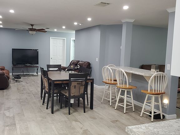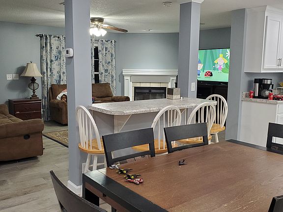 Open floor plan with front and back living room open to Kitchen area. 4 bedrooms, 2 bath, fireplace, newly remodeled with custom made cabinets through out the house, new sheetrock on all interior walls and painted, new doors, added lighting, large 3 car garage with large patio added to rear of home. Front porch goes all the way across the front of the home with a 16 x16 in the middle.The property is very well lite with 4 large flood lights and numerous outside flood lights.The house sets on a 2 acre property fenced in and landscaped with grape vines, satsuma orange trees apple tree , pear tree, blue berries and black berries. Large club house above ground for kids to play and fenced underneath. Large shelter for storing all lawn equipment items with a fenced in dog pen. In the back corner is a game room approx 60 x 20 with front and side shelters.It is also wired and plumbed with cabinets. The entrance and rear property is covered in gravel rocks all the way to the game room. Also included is 10 x 10 picnic area.