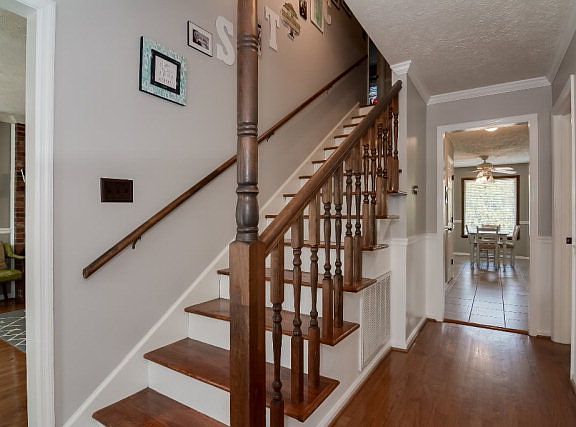 Absolutely wonderful home in great neighborhood! Wonderful condition, great location at the end of a cul de sac where you don't have to worry about a lot of traffic! Inside offers a spacious family/great room with wood burning fireplace and hardwood floors, a large dining room and lovely kitchen with breakfast room overlooking the back yard. Kitchen has granite counters and tile flooring, lots of cabinets and a laundry room. Master bedroom is on the main floor, two guest bedrooms upstairs share a Jack and Jill bath, plus there is a bonus room upstairs great for hobbies, playroom, sewing, office, etc...Current owners use it for a child's bedroom because it serves as bedroom and playroom together. Outside boasts a wonderful rocking chair front porch to enjoy nice weather and a large fenced back yard. Square footage is from tax card, measure if important, please. Lots of room to add a garage or extra parking.
