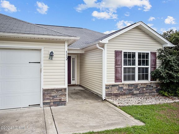 **SELLER IS OFFERING $3,000 USE-AS-YOU-CHOOSE FUNDS!** Welcome to Gardens Gate, where your new home awaits with no HOA and no city taxes! 112 Braeburn Blvd offers over 1550 square feet, three bedrooms and two full bathrooms, and a two car garage. Enjoy your summer nights around the fire pit in the large fenced in backyard, with only the woods for privacy behind you. Heading into the home you are greeted by vaulted ceilings in the living room, and an electric fireplace. The open floor plan flows easily into the kitchen and dining room, featuring low maintenance flooring, stainless steel appliances, ample cabinet space, and a beautiful tile backsplash! The master bedroom is on its own wing of the home, with a large walk in closet and a bathroom with dual vanities, a large soaking tub, and a standing shower. The other wing of the home features two large bedrooms and the second full bathroom. Use the seller concessions to update this home to be your favorite paint color, update the flooring, or towards your closing costs. Come check out 112 Braeburn today!