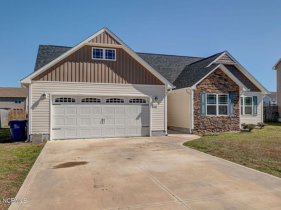 This beautiful home is located in Bridgeport community. Boasting over 1500 square feet with plenty of space. The home offers an open floor plan with vaulted ceilings in the great room. The kitchen has espresso cabinets and plenty of counter space. The owner's suite featuring a large walk-in closet, tray ceiling, dual vanities, soaker tub along with a walk-in shower. The spacious two car garage offers plenty of rooms for parking and storage. Spend your days at the community pool or take a short drive to the beach. Conveniently located between Wilmington and Jacksonville. Not far from Camp Lejeune Base.