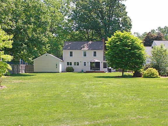 Immaculate, quiet and comfortable Colonial located in established neighborhood features a modern kitchen, appliances, lots of cabinets and double-hung windows with a great view of the large, flat, yard with mature trees. Also includes a formal dining room with corner built-in, large living room with fireplace, adjoining 3 season sunroom and a slider to large deck, 2 car garage with remote, fenced yard (perfect for parties, IG Pool or a huge Ice Hockey rink), programmable sprinkler system, part finished base. Second floor consists of 4 Bedrooms, (1 currently being used as a walk-in closet) and full bath. This home is completely move-in ready and serves as a quiet retreat in a much sought after location close to schools, dining, shopping and recreation. No showing until OPEN HOUSE 11-2pm, Sunday June 3rd please.