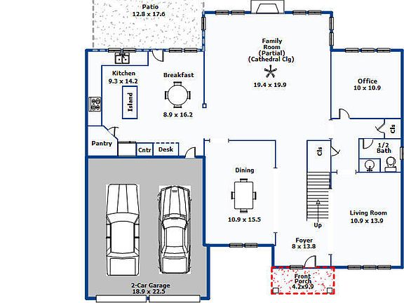- Attached garage spaces: 2