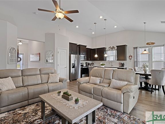 Check out this GORGEOUSLY maintained 3 bedroom, 2 bath, one story/ranch style home that is better than new & move-in ready! As you enter this home be prepared to fall in love with the open floor plan, it is perfect for the family who loves to entertain. You will love the spacious living room, gorgeous open kitchen featuring stainless steel appliances, quartz countertops, 42 inch cabinets, tile backsplash, & an island w/ a breakfast bar. The primary suite features a large walk-in closet, dual vanities, walk-in shower & cultured marble counters. Outside you will love the screened-in porch, perfect for bug-free relaxation. You are sure to also love the fully fenced yard for added privacy. Community amenities include a pool w/ slide, separate splash pad, clubhouse, fitness center & tennis courts. Minutes from all of the shopping, dining & entertainment that Pooler has to offer! Easy access to 95, 16, Gulfstream, HAA, & Savannah/HHI Airport & only 20 minutes from the new Hyundai plant!