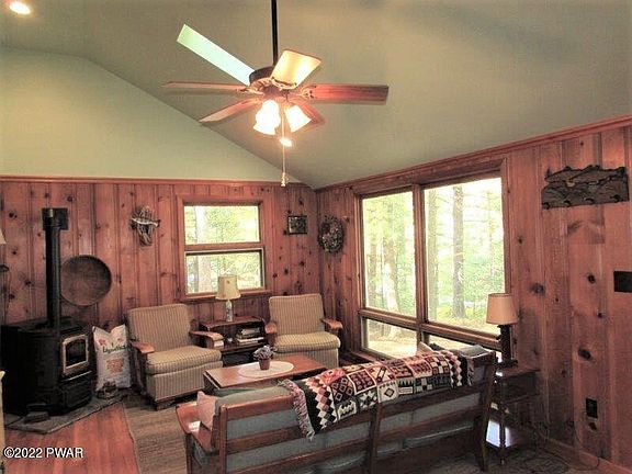 This charming mountain cabin is the perfect weekend/vacation retreat. The house is fully updated to include new kitchen with granite countertops, new bath with walk-in shower, tank-less hot water heater, hardwood floors, vaulted ceiling and large deck. Two bedrooms with larger bedroom featuring French doors to flagstone patio and looking out on a woodland scene. Large windows provide a 270'' view of lush trees and foliage. This Low HOA fee cabin sits close to the Delaware National Recreation Area with 150 miles to canoe/fish/swim/hike and cross country ski., Beds Description: 2+Bed1st, Baths: 1 Bath Level 1, Eating Area: Dining Area