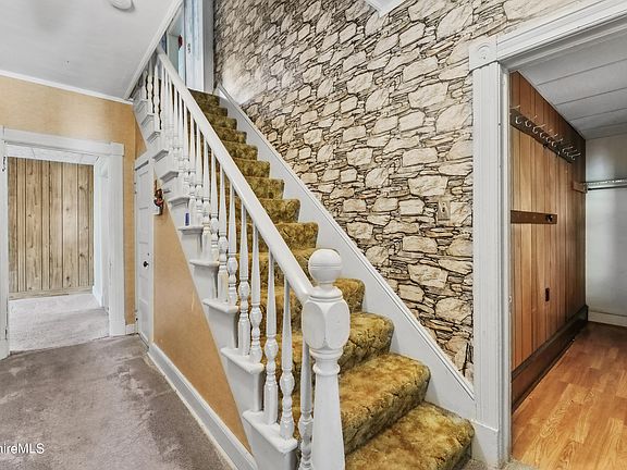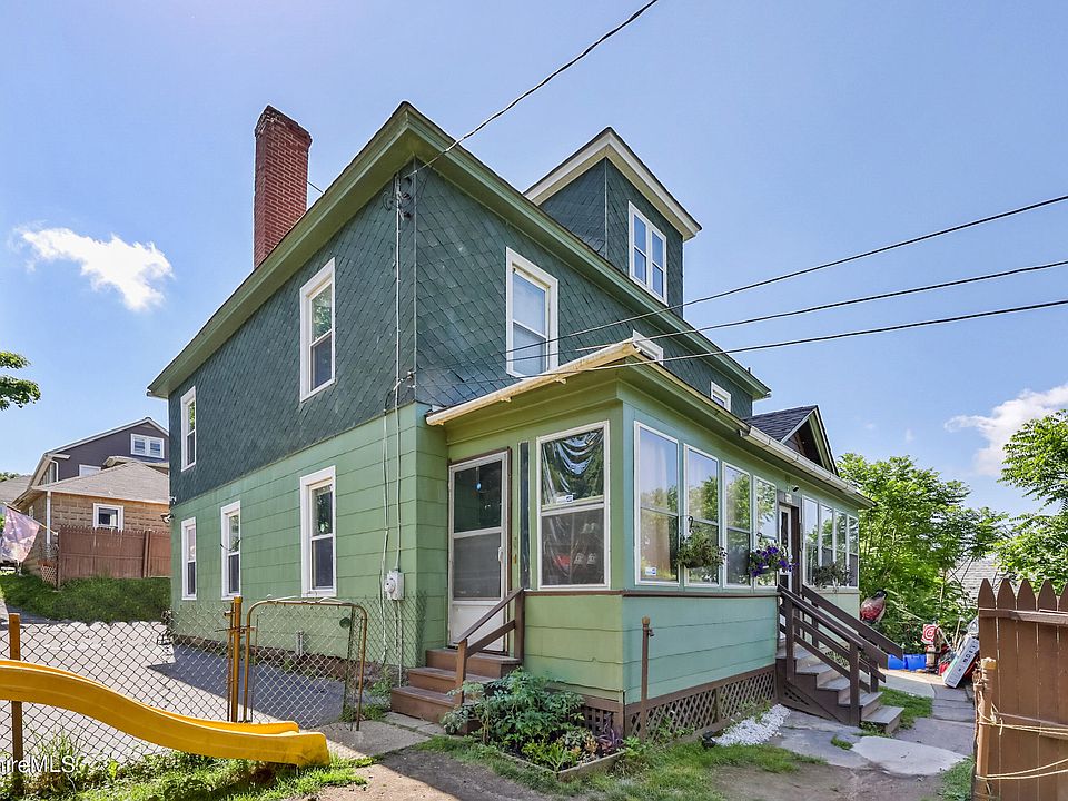 This sizeable colonial home perched on a hilltop offers ample space, comfort, and functionality for a large family. Its classic design and generous layout provide 4-5 bedrooms ensuring privacy and personal space for each family member, while still providing excellent communal space. The owners used the former 2nd bathroom as a 6th bedroom, but it could potentially be restored back into a 2nd full bath. The home has vinyl replacement windows, a new porch roof, and a newer Rheem hot water heater. Other features include: a fenced yard, mature landscaping, new deck, an ADT system with 4 outdoor security cameras and a wooden play set with a slide. Owners do not use front steps. The entrance to the property is accessed via a shared driveway located on