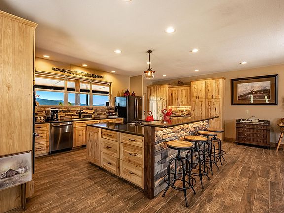 This one has it all! 2914 sq ft of totally remodeled house, 1500 sq ft heated and insulated man cave/workshop, attached 2 car garage, 5.4 acres fenced and cross fenced (yep, horses welcome!), Wheeler Views, 3 minutes from Angel Fire yet no resort dues, AND ALL ON ONE LEVEL! Stainless appliances, ceramic tile and carpet flooring, atrium/gym, efficient wood stove to help with the heating bills, landscaped and lots of nice furnishings included!