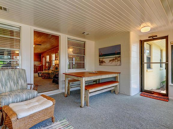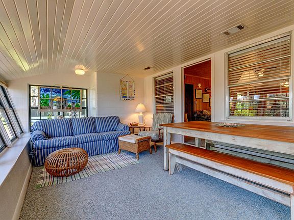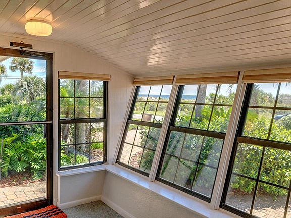 5-BR, 3-BA Beach Cabin with Gulf Views Galore With abundant curb appeal outside and a Florida beach home atmosphere inside, this home exudes charm and low maintenance. The concrete block home boasts expansive brick paver driveways with oversized parking areas. Towering palms and immaculate landscaping frame the house, from which there are unobstructed water views of the Gulf of Mexico. A uniquely designed, enclosed front sunroom features an interesting angled wall of windows with a radiant white shiplap ceiling. The family room flows smoothly into a dining space and breakfast bar or wine counter. The kitchen has white appliances, tile flooring, stainless steel double sink and a door leading to the breezeway and Mother-in-Law Suite.