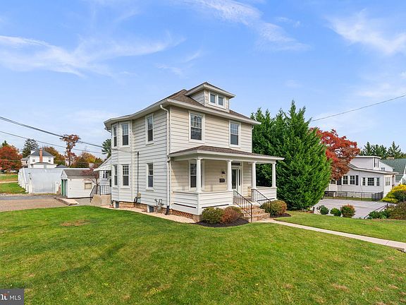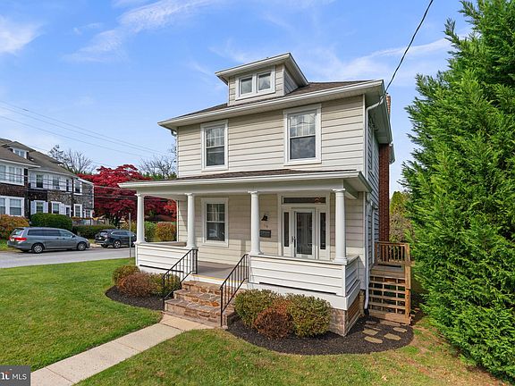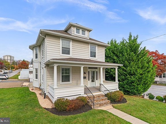 Welcome to 112 Burke Ave — a timeless Four Square home offering a rare opportunity for both residential and office use thanks to its unique zoning! Step inside the grand foyer and be greeted by beautiful woodwork, and exquisite old-world charm, complete with intricate moldings and original keyhole door knobs. The spacious family and dining rooms are accented by custom built-ins and detailed trim work, creating the perfect blend of character and function. The brand-new kitchen is a showstopper, featuring light gray shaker cabinets, quartz countertops, and stainless steel appliances. A convenient drop zone, mudroom, and fully remodeled bath complete the main level. Upstairs, you’ll find three generous bedrooms and an oversized, beautifully renovated full bath. Access to the unfinished attic provides endless possibilities—expand your living space with a playroom, office, or additional bedroom. The lower level offers newly installed LVP flooring, fresh paint, a full bath, laundry area, and a separate entrance—ideal for a family room, guest suite, or home office. Outside, enjoy professionally hardscaped grounds, a detached two-car garage (sold as is), and ample parking for at least four additional cars. Located just steps from Towson University and all that downtown Towson has to offer, this home has been thoughtfully updated and lovingly maintained—perfect for those seeking charm, convenience, and versatility in one exceptional property!